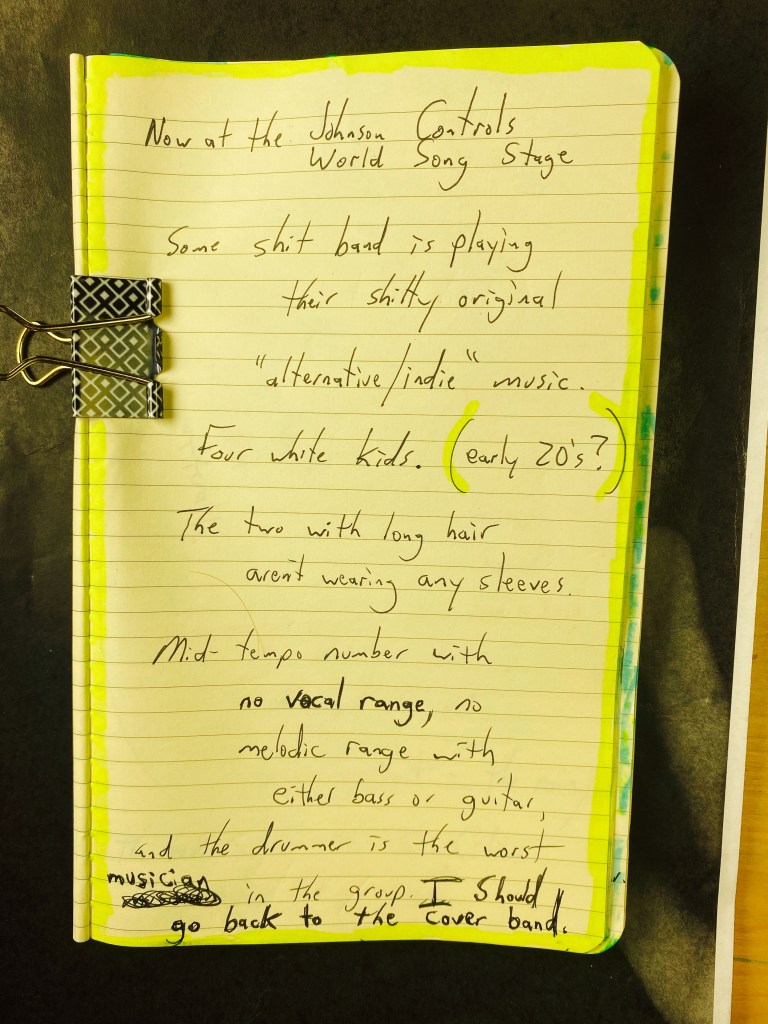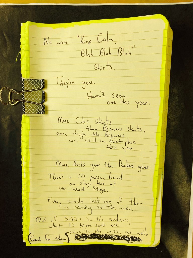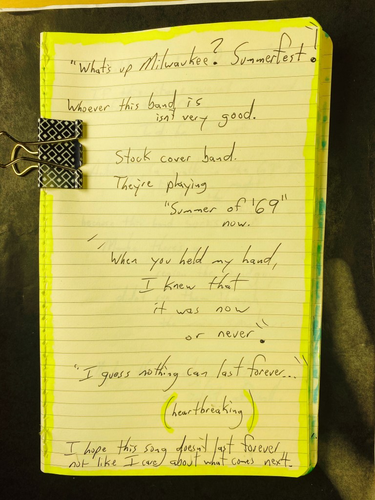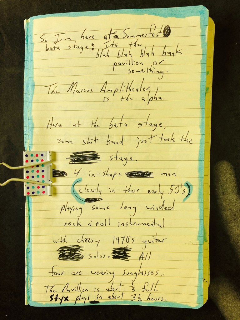 So, I’m here at a Summerfest beta stage: It’s the blah blah blah bank pavilion or something.