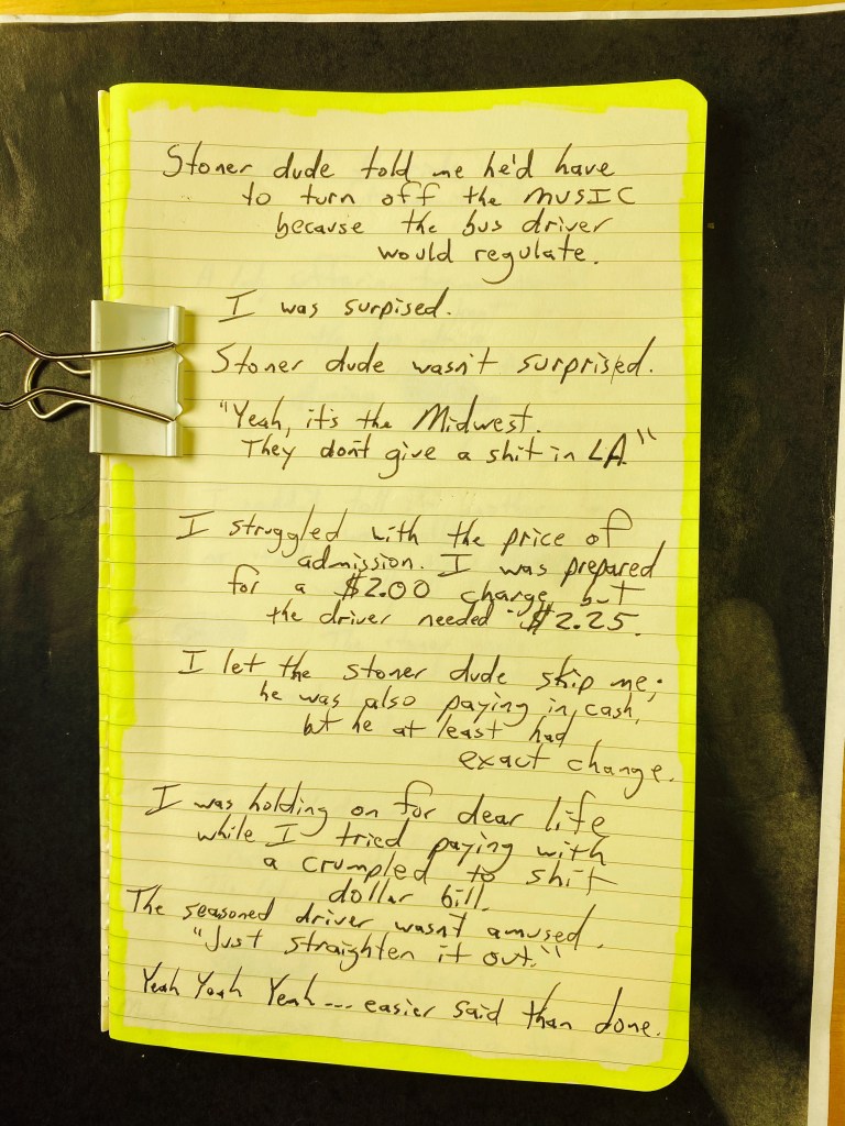 Some millennial just showed up with her Bob Marley back-pack. Katy Perry is playing on the loudspeaker.